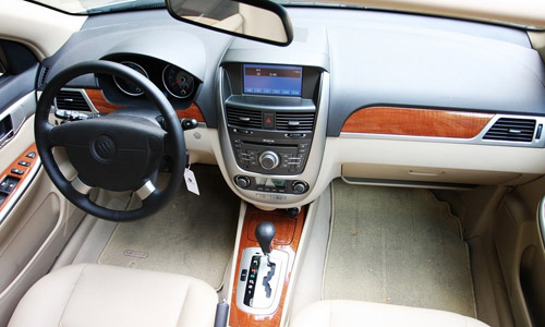 新凱越的內(nèi)飾仍舊以老版的沉穩(wěn)和典雅為基調(diào),只是仿桃木內(nèi)飾的顏色調(diào)艷了些,真皮的顏色也略有變淺。內(nèi)飾采用了深淺兩種色調(diào),儀表臺(tái)上半部分和轉(zhuǎn)向盤(pán)采用了黑色,這不僅有效地避免了行車(chē)過(guò)程中前擋風(fēng)玻璃反射給駕駛員帶來(lái)的干擾,也顯得非常動(dòng)感;其余部分則采用了非常溫馨的米色,這讓駕駛員和乘客在乘坐過(guò)程中感到非常舒適。坐上新凱越的駕駛座,可以明顯發(fā)現(xiàn)新車(chē)的內(nèi)部設(shè)計(jì)比舊款更為精致。