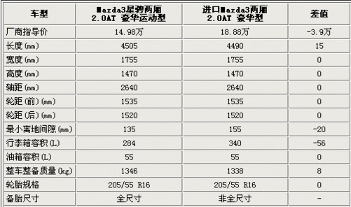 從上表不難看出,馬自達(dá)3星騁兩廂頂配車(chē)型價(jià)格上也便宜了將近4萬(wàn)元,性?xún)r(jià)比自然也得到大幅提升。而在車(chē)身尺寸上則基本保持與進(jìn)口版的一致,更長(zhǎng)的車(chē)身將原有的緊湊變得更加修長(zhǎng)流暢。國(guó)產(chǎn)版的離地間隙要更小一些,這也提升了車(chē)身整體的行駛穩(wěn)定性。值得一提的是,國(guó)產(chǎn)版配備了全尺寸備胎,這在進(jìn)口版車(chē)型是不法實(shí)現(xiàn)的。