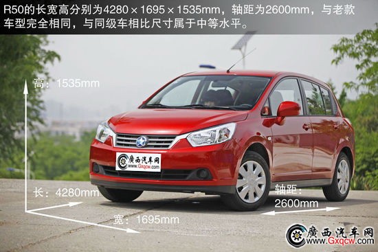 車身尺寸方面與老款車型無異,R50的長(zhǎng)寬高分別為4280×1695×1535mm,軸距為2600mm。三廂的D50僅在車長(zhǎng)方面增加了200mm,達(dá)到了4480mm,其余尺寸與R50相同。在車身尺寸方面,D50和R50表現(xiàn)還算中規(guī)中矩,實(shí)際內(nèi)部空間我們將在下頁展示,其表現(xiàn)很是驚人。
