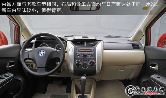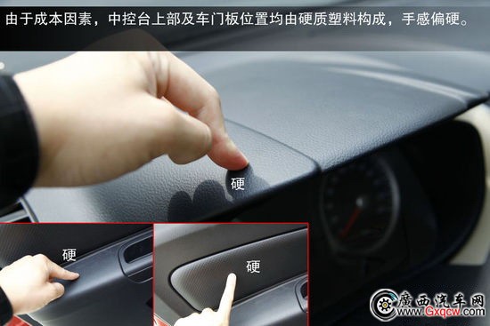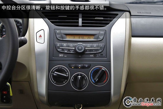 內(nèi)飾方面與老款車型相同,整體布局和做工方面均與日產(chǎn)騏達(dá)處于同一水平。只是由于成本因素,中控臺(tái)上部及車門板位置均由硬質(zhì)塑料構(gòu)成,手感偏硬。不過板材接縫很均勻,同時(shí)盡管這臺(tái)試駕車是新車,但車內(nèi)異味較小,可以看出作為合資自主的R50這在方面很有優(yōu)勢(shì)。
