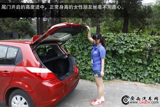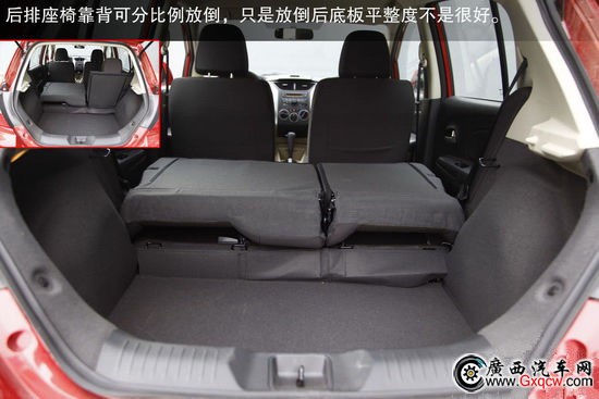 行李箱內(nèi)部很規(guī)整,并且兩廂車的R50行李箱開頭很大,取放大件行李很方便。尾門開啟的高度適中,正常身高的女性朋友絲毫不用擔(dān)心。后排座椅靠背可分比例放倒,只是放倒后底板平整度不是很好。