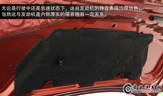 無論是行駛中還是怠速狀態(tài)下,這臺(tái)發(fā)動(dòng)機(jī)的靜音表現(xiàn)均很出色,當(dāng)然這與發(fā)動(dòng)機(jī)蓋內(nèi)側(cè)厚實(shí)的隔音棉有一定關(guān)系。