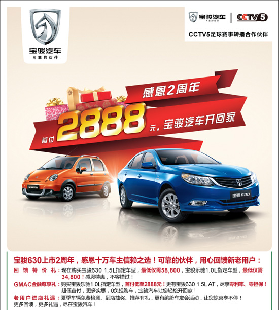 寶駿630超低特惠5.88萬元起。國(guó)際品質(zhì)微轎樂馳低至3.48萬元起,更有首付2888元寶駿汽車輕松貸回家,0利息,0擔(dān)保,讓您0負(fù)擔(dān)。更多活動(dòng)詳詢:0771-3869898,3930292