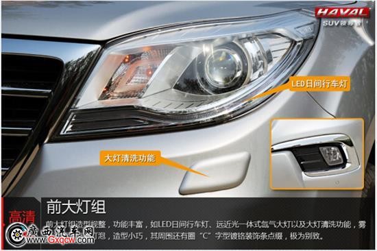 哈弗H9采用鷹眼式氙氣大燈設(shè)計(jì),勾勒出極具攻擊力的前部造型,霸氣威武。內(nèi)嵌的雙菱形燈具邊框,并以鍍鉻邊條勾勒出整體輪廓,視覺效果提升很大。同時(shí),前大燈還配備了LED日間行車燈和大燈清洗功能,提升了行駛安全性。
