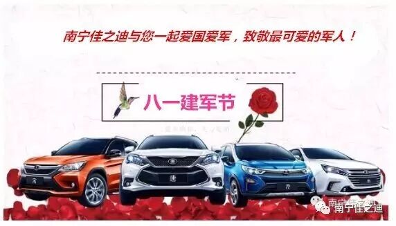 2017年是建軍90周年,2017年也是第90個“八一建軍節(jié)”。從南昌起義的**聲槍響到改革開放輝煌的今天,您走過了風風雨雨九十年。九十年,征途漫漫;九十年,激流險灘;九十年,你譜寫了一曲曲感天動地的詩篇。在這美好的日子,南寧佳之迪與您一起慶祝八一建軍節(jié),特別給予在伍及退伍軍人購車六敬禮。