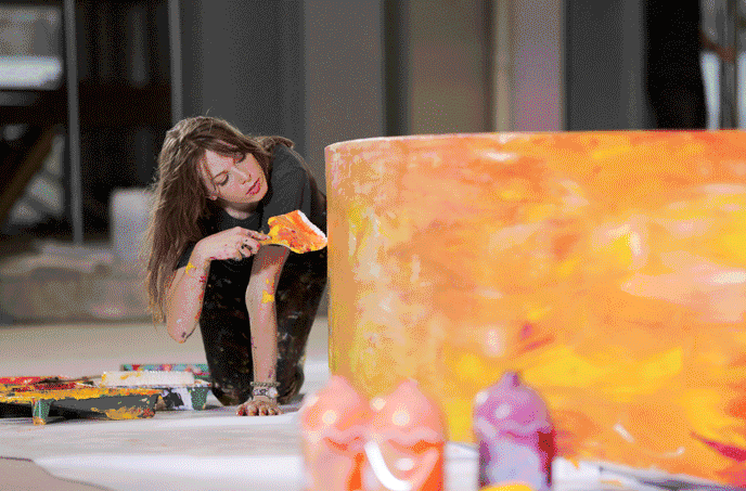 藝術(shù)家Alexa正在準備裝置展覽的物料