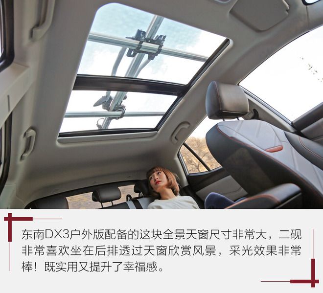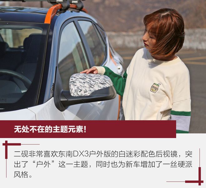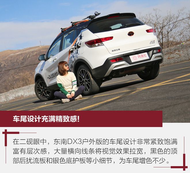 在年輕人已經(jīng)成為國內(nèi)汽車市場主流消費群體的前提下,不少汽車品牌紛紛推出了更加年輕、個性且有特點的新車,以迎合消費者的需求。就像我們最近拿到的這臺東南DX3戶外版就是個非常典型的例子,專為酷愛戶外出行出游的年輕人打造。為此,我們找來了國內(nèi)知名旅游達人-王二硯,看看這位標(biāo)準(zhǔn)的90后妹子是如何評價東南DX3戶外版的。