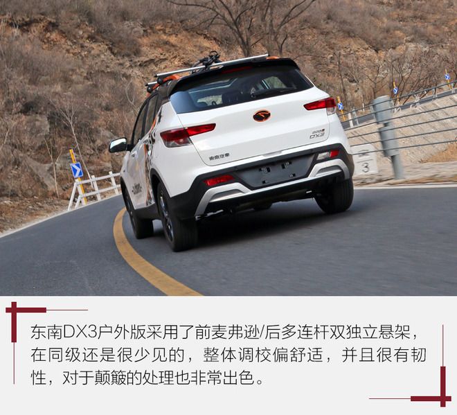 另外值得一提的是,二硯對于東南DX3戶外版的車身尺寸也十分滿意,4354mm/1840mm/1670mm的長/寬/高,加上2610mm的軸距,讓東南DX3戶外版在同級顯得格外搶眼,200mm的離地間隙讓DX3有著不錯的通過性。